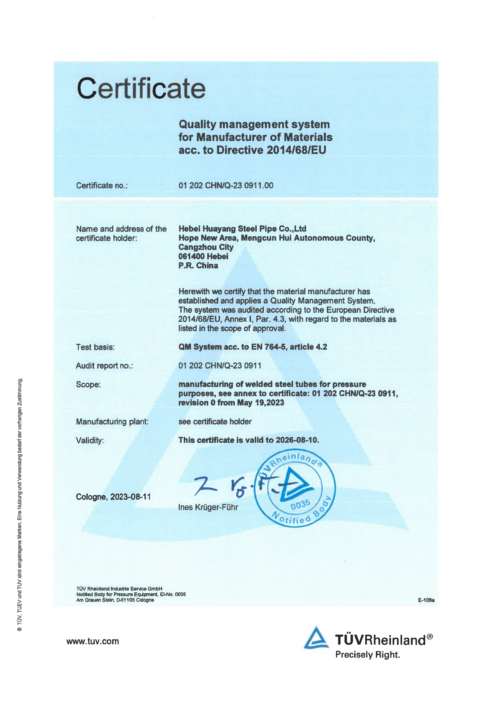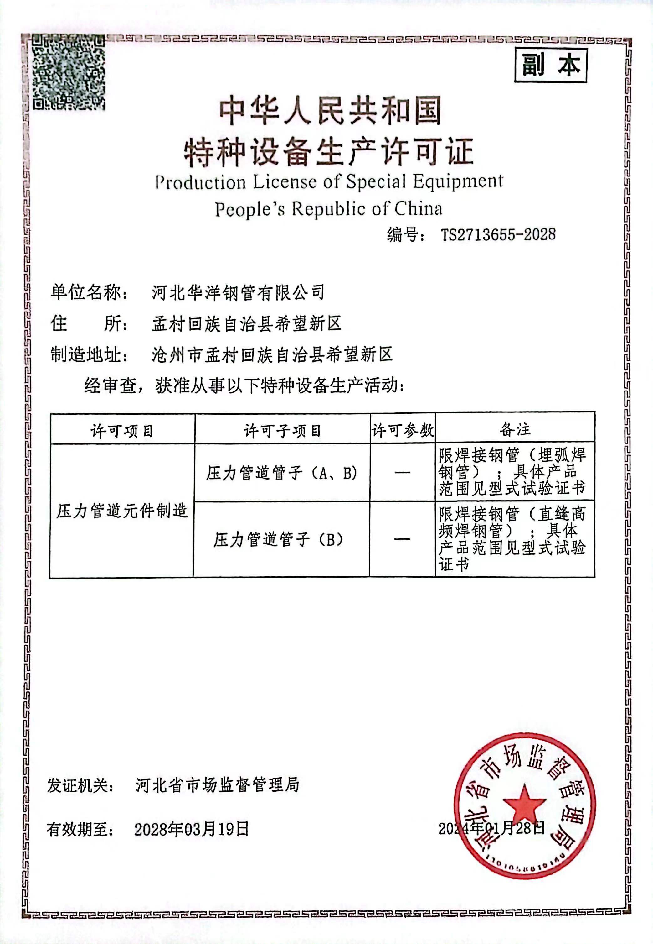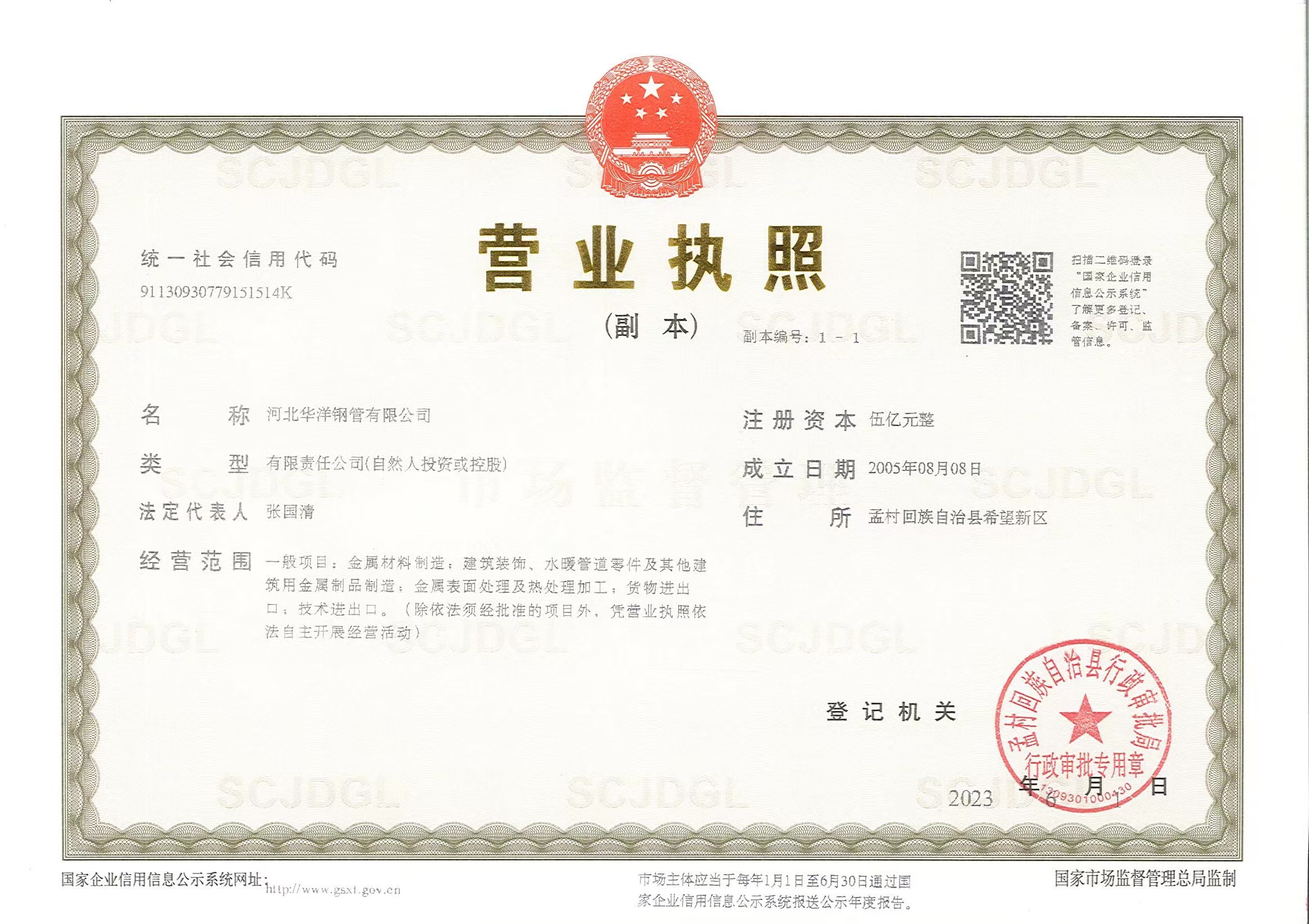 公司產(chǎn)品主要用于石油、天然氣、水、蒸汽、煤氣等高、中、低壓流體輸送管道及打樁、橋梁、建筑等結構用鋼管,并承擔了國內外標志性工程建設,華洋作為一個綜合型生產(chǎn)企業(yè),下設河北銘高貿易有限公司,以及在天津石家莊、山東、四川、廣州等地設立有3家分公司和5個辦事處。產(chǎn)品銷往各個城市井出口東南亞、中東、歐美等八十多個地區(qū),在國內外享有很高的聲譽。