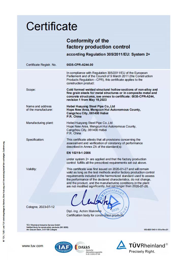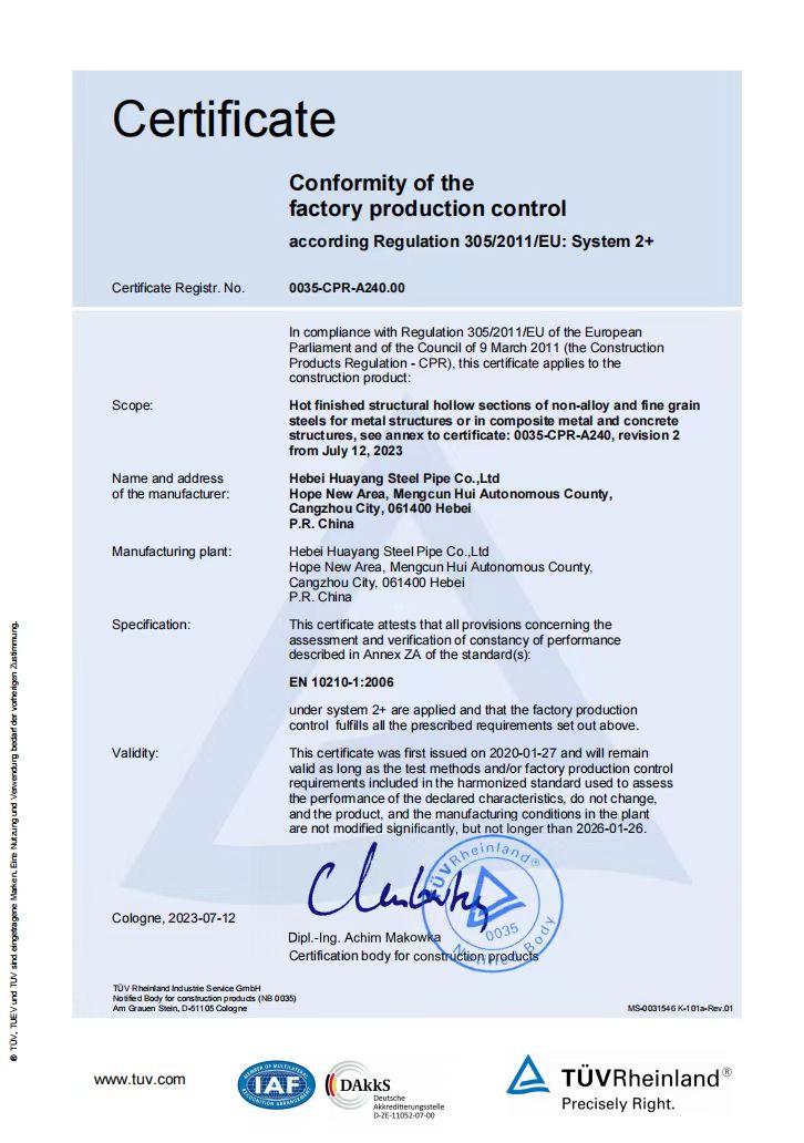 河北華洋鋼管有限公司公司創(chuàng)建于2005年,注冊資金5億元,公司占地面積1000余畝,固定資產(chǎn)12億元,年銷售收入近100億元,現(xiàn)有員工600余人。“華洋牌"高頻直焊鋼管被評為“河北省名牌產(chǎn)品”,年生產(chǎn)能力可達260萬噸,2024年河北華洋鋼管有限公司榮獲河北省百強民營企業(yè)(69位),河北省百強制造業(yè)(57位)榮譽稱號。